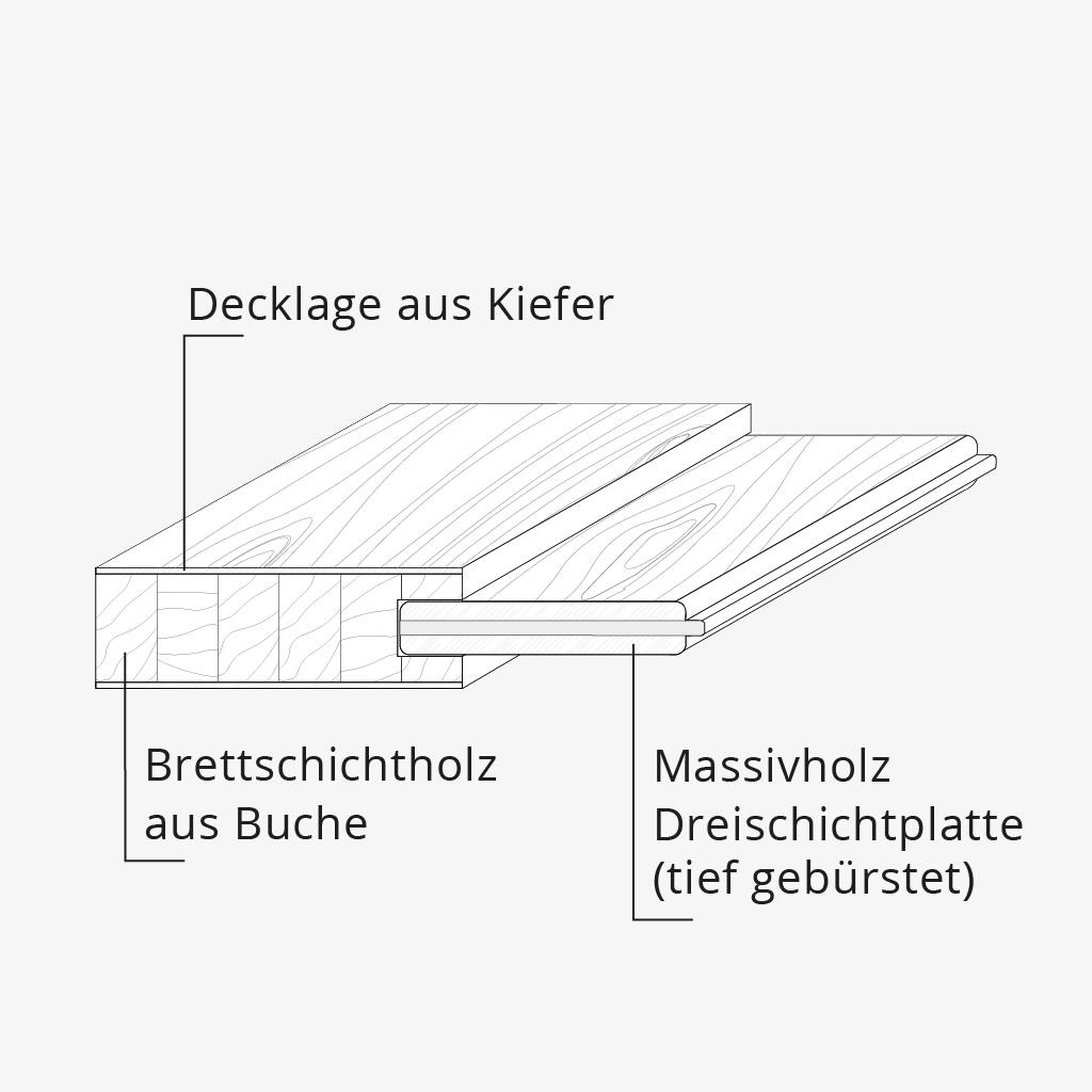 Bei Reno legen wir Wert auf schöne Holzmuster – die Wahl der Kiefer in unseren Projekten ist nicht zufällig! Edle, weiche Linien, starke Kontraste und die unter der Hand zu spürende Struktur des Zirbenholzes sind für uns einfach magisch. Genau aus diesem Grund haben wir uns entschieden, das Holz zu bürsten, was sein einzigartiges Muster betont. Bei Reno kombinieren wir gründlich getrocknete und speziell ausgewählte Kiefernbretter mit einer meisterhaften Handwerkswerkstatt, um ein makelloses Bürstergebnis zu erzielen.