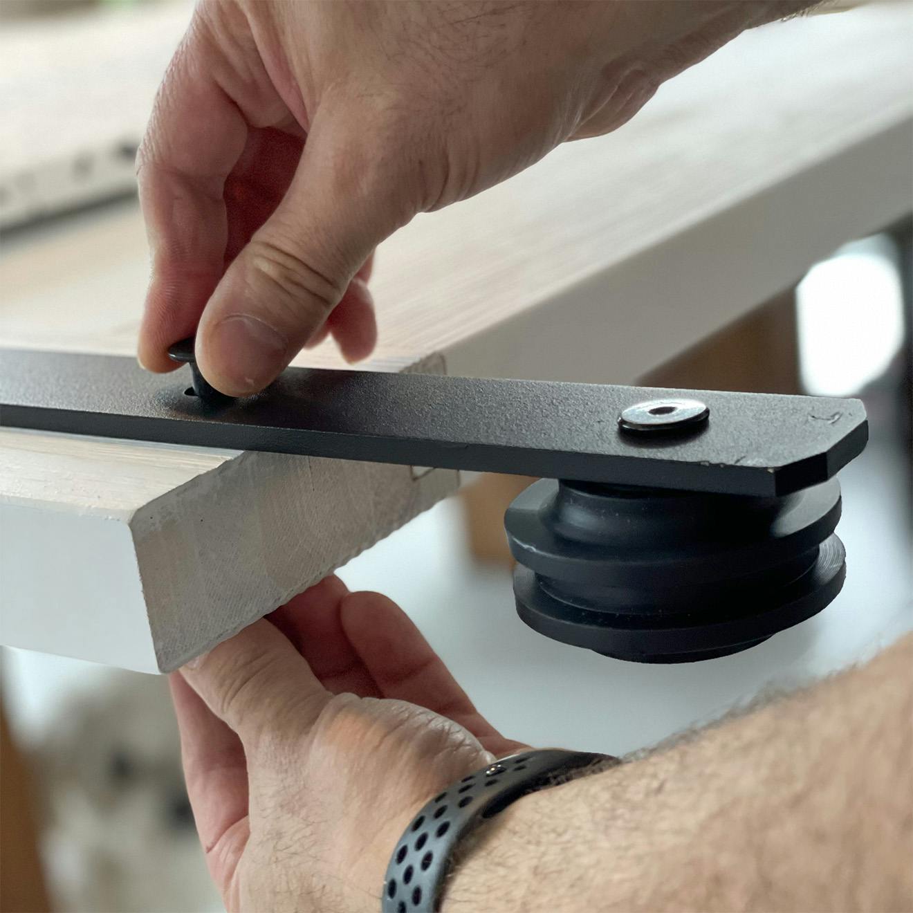 Diesen Montageschritt müssen Sie nur durchführen, wenn Sie sich für die Holzschiebetüren entschieden haben. In diesem Schritt geht es darum, die Aufhänger an den Türrahmen zu schrauben. Bei Metalltüren sind die Aufhänger in den Rahmen integriert. Aufhänger sind weitere Hauptelemente – die an ihren Enden befestigten Räder rollen auf der oben erwähnten Führungsschiene.