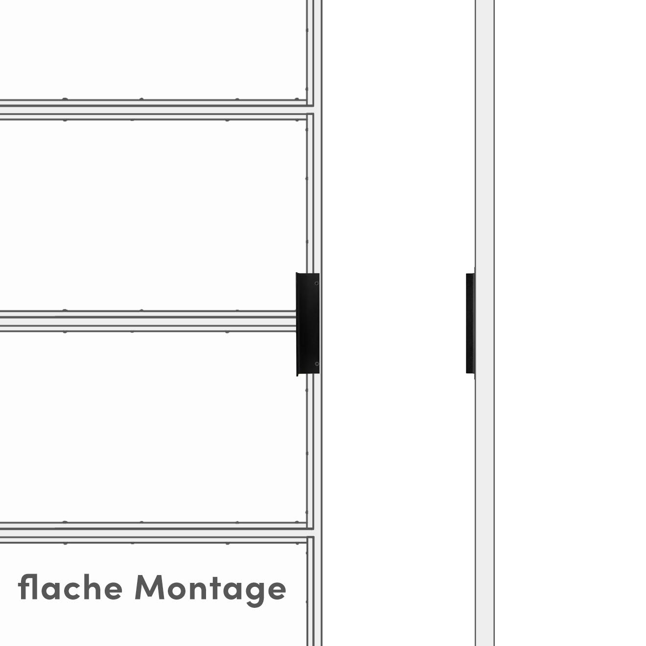 • flache Montage – empfohlen auf der Vorderseite der Tür (flache Montage auf der Rückseite ist nur möglich, wenn der Abstand zur Wand mindestens 2 cm beträgt)