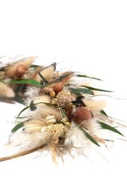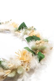 Derzeit umfasst unser Angebot 6 verschiedene Kranzdesigns, von gedämpfteren Kompositionen (Am Horizont oder Lavendelgeschichten) bis hin zu äußerst reichhaltigen und dekorativen (Frühlingswiese oder Grasrauschen).