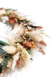 Natürliche Türkränze sind eine Kombination aus Zartheit und Haltbarkeit, die dank der Verwendung geeigneter Methoden zur Stabilisierung von Pflanzen, die in den Zusammensetzungen verwendet werden, möglich ist. Hier finden Sie natürliche Blumen, Ziergräser oder Blätter, die zusammen eine unglaublich gemütliche, heimelige Atmosphäre in Ihrem Interieur schaffen.